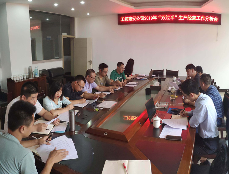 6月24日下午,工投建安公司董事長(zhǎng)石清華主持召開(kāi)2019年“雙過(guò)半”生產(chǎn)經(jīng)營(yíng)工作分析會(huì),簡(jiǎn)要分析了當(dāng)前完成目標(biāo)情況和存在的問(wèn)題。要求對(duì)主要管控項(xiàng)目形成統(tǒng)一的管控制度,強(qiáng)化風(fēng)控能力。并對(duì)下半年的工作進(jìn)行部署,提出要主動(dòng)作為,主動(dòng)管理,加快進(jìn)度,全力以赴,做到公司承建項(xiàng)目各關(guān)鍵節(jié)點(diǎn)在預(yù)計(jì)時(shí)間內(nèi)完成,確保公司全年經(jīng)營(yíng)目標(biāo)的完成。
