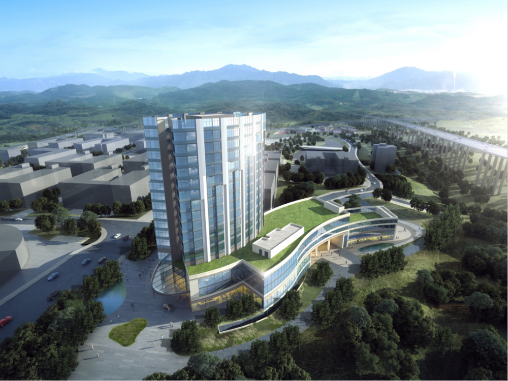 培訓中心及科技轉(zhuǎn)化大樓:西側(cè)為科技轉(zhuǎn)化大樓,4層;東側(cè)為培訓中心,地下2層,地上16層,總高度67.5m,基礎(chǔ)為旋挖樁基礎(chǔ),主體為框架剪刀力墻結(jié)構(gòu),外墻為鋁板、石材及玻璃幕墻。建筑面積38135㎡,預計2020年12月30日投入運營。